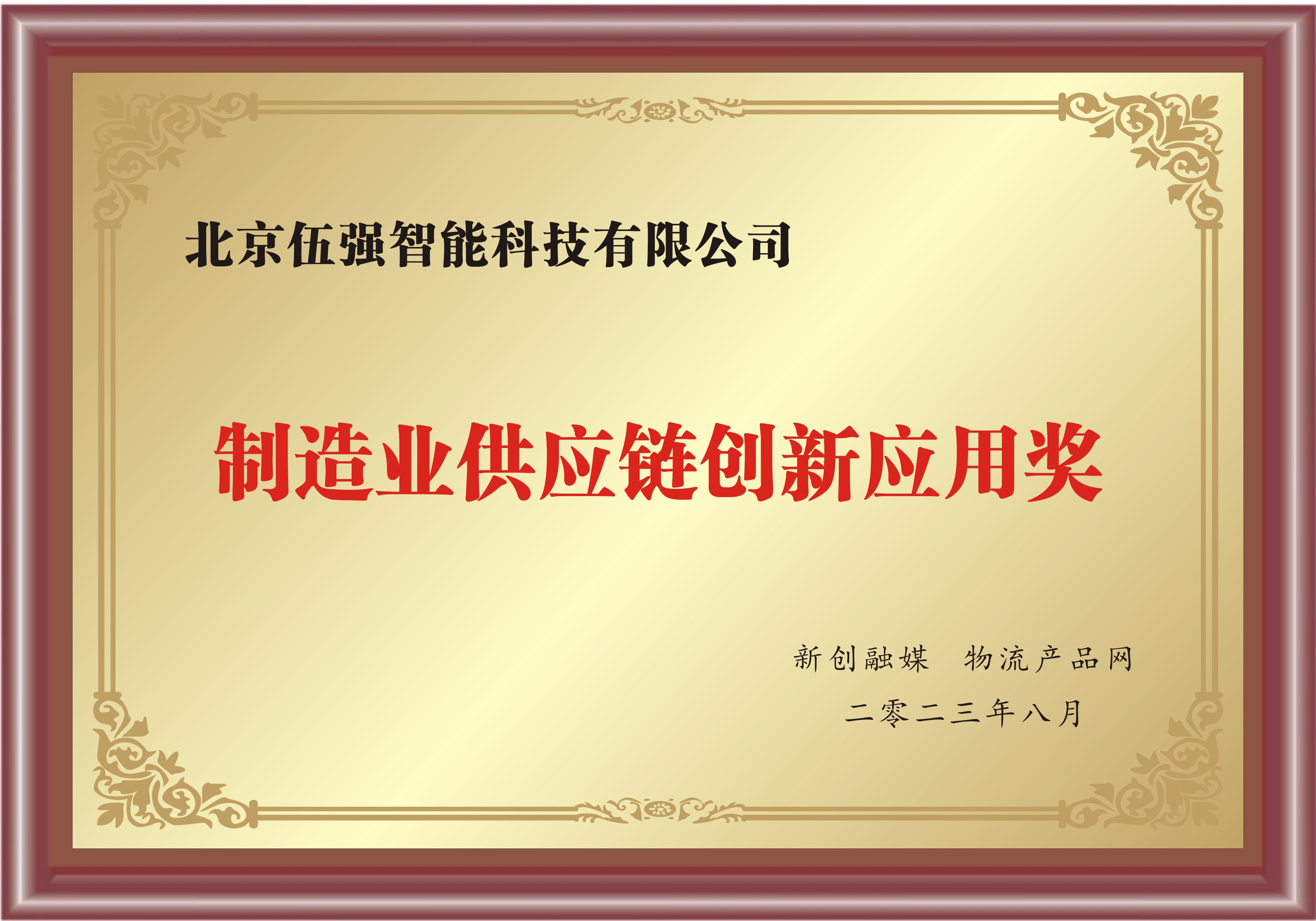 在下午進行的頒獎典禮上,伍強智能科技榮獲“制造業供應鏈創新應用獎”。本次評比入選,是行業協會及專家代表對伍強供應鏈及物流領域展現的綜合實力的高度認可,也是激勵伍強將繼續為物流行業的發展及智能化轉型貢獻自己的力量。